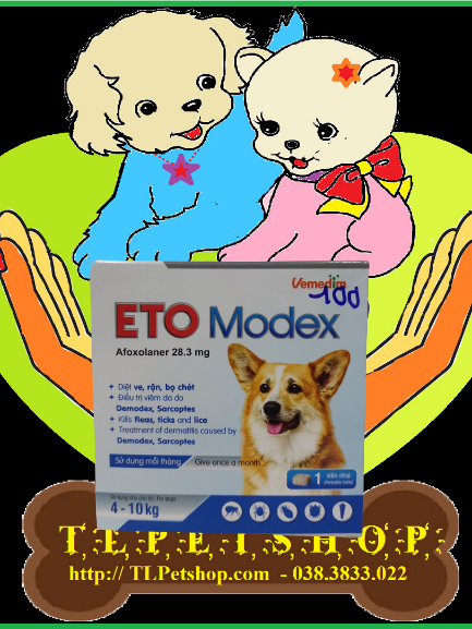 - Viên Uống Trị Ve, Viêm Đã Eto Modex 4-10kg Viên nhai Eto modex cho chó vị thịt bò an toàn hiệu quả duy trì suốt 1 tháng LIỀU DÙNG