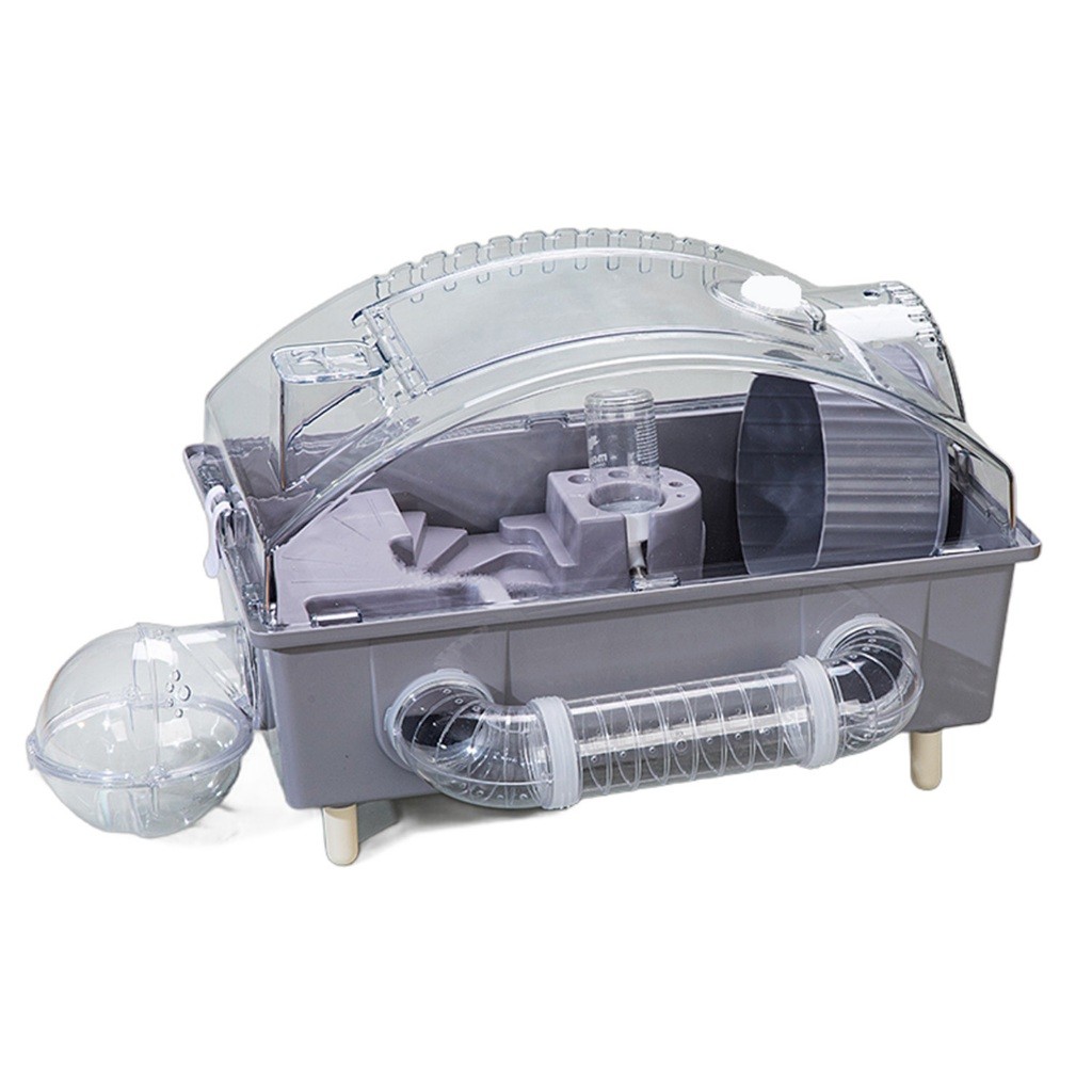 - Có đường hầm, ống nối trong suốt, bóng tròn ngoài lồng để hamster vui chơi, khám phá. Kèm bánh xe chạy