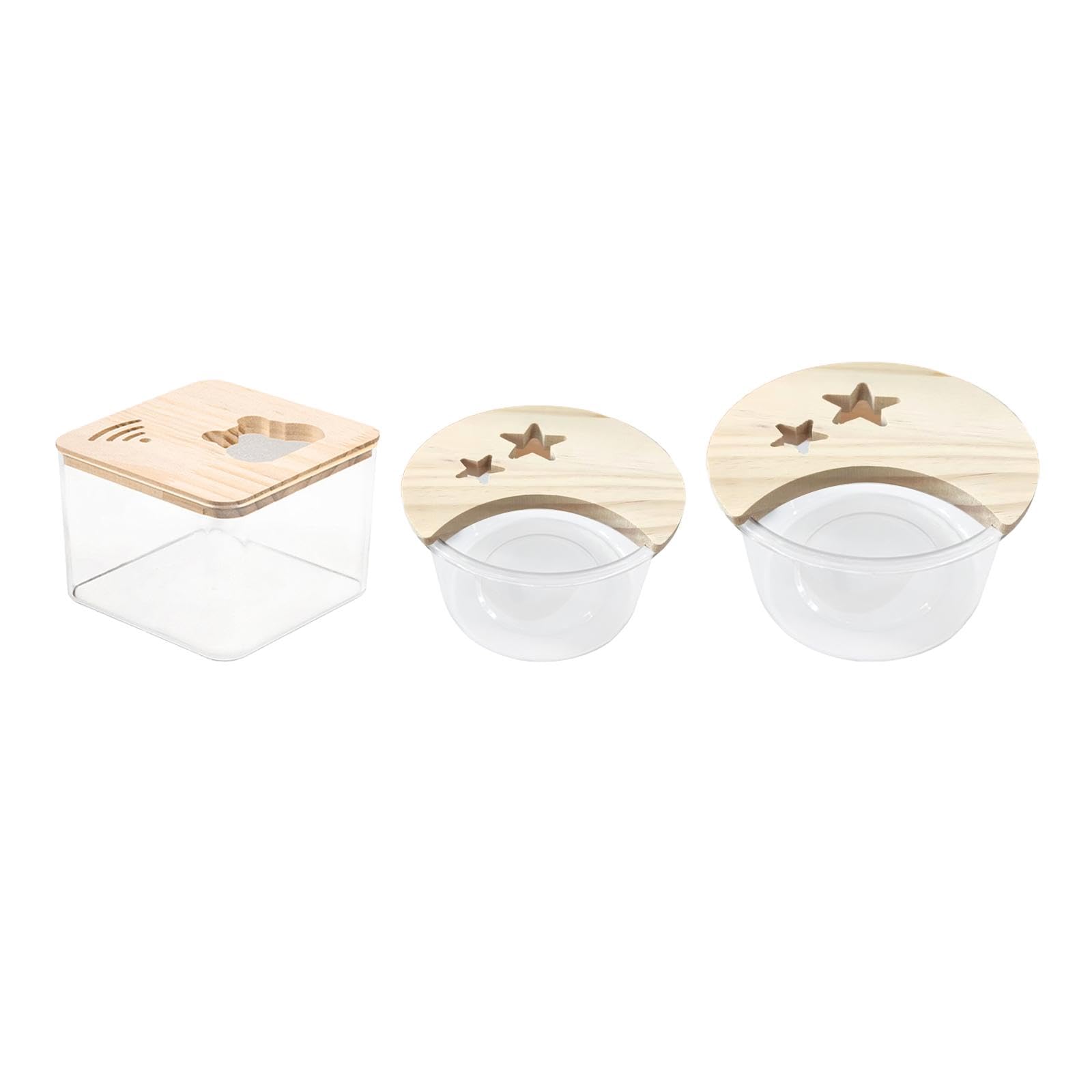 - Làm từ nhựa hoặc kính trong suốt, giúp bạn dễ quan sát khi hamster tắm. Nắp gỗ