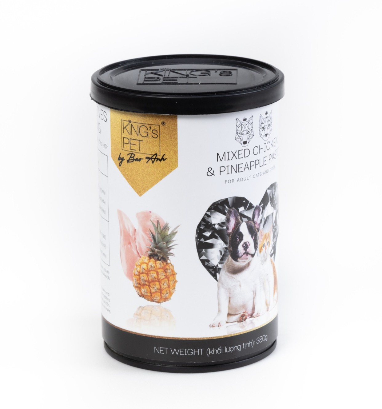 - Với giá thành phải chăng, chỉ từ 8000đ/bữa ăn hàng ngày, Pate trái cây King’s Pet By Bao Anh mang đến sản phẩm dinh dưỡng với chất lượng ổn định và an toàn với sức khỏe thú cưng. Với quy trình khép kín đạt tiêu chuẩn cùng nguồn nguyên liệu tươi ngon, an toàn, King’s Pet đã nhận chứng chỉ xét nghiệm của ISO9001:2015, HACCP, xét nghiệm Vinacert và được Cục Chăn nuôi thuộc Bộ Nông nghiệp & Phát triển Nông thôn cấp giấy phép lưu hành toàn quốc hạng mục Thức ăn hỗn hợp hoàn chỉnh cho chó mèo từ 01 tháng tuổi.