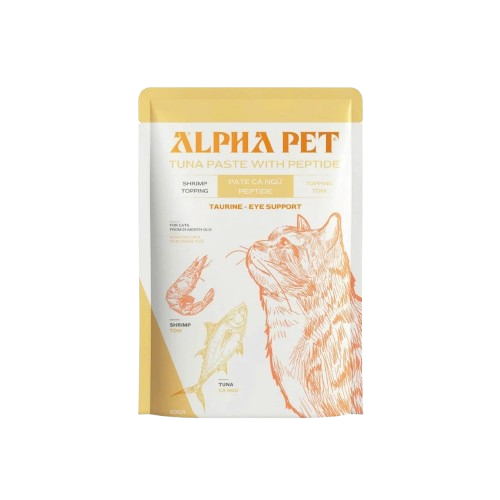 - 60% cá ngừ tươi, giàu đạm dễ hấp thu, giúp mèo phát triển cơ bắp, duy trì vóc dáng săn chắc. Bổ sung 10% gan gà – nguồn vitamin A tự nhiên, hỗ trợ tiêu hóa, tăng sức đề kháng và giúp lông, da khỏe mạnh hơn. Điểm nhấn khác biệt chính là 3% topping tôm, giàu astaxanthin và các dưỡng chất chống oxy hóa, giúp bảo vệ võng mạc, tăng cường thị lực và giữ cho đôi mắt mèo luôn sáng tinh anh. Không chỉ dừng lại ở hương vị thơm ngon, pate Alpha Pet còn là giải pháp dinh dưỡng cân bằng, dễ tiêu hóa, phù hợp cả với mèo kén ăn hay có hệ tiêu hóa nhạy cảm. Công nghệ chế biến hiện đại giữ trọn vẹn dưỡng chất, đồng thời tạo kết cấu mềm mịn, dễ ăn, kích thích vị giác ngay cả những “boss” khó chiều nhất. ƯU ĐIỀM NỔI BẬT