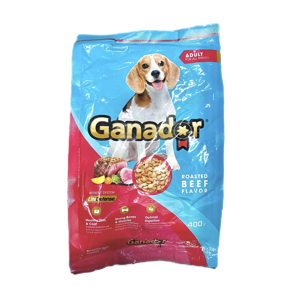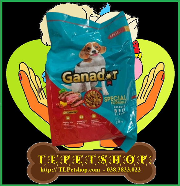 - Đây là sản phẩm thức ăn cho chó trưởng thành hương vị thịt bò nướng của thương hiệu Ganador. Tên sản phẩm